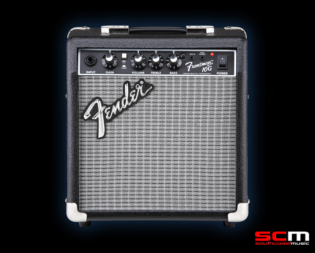 The 10-watt Frontman 10G features a Specially Designed 6" speaker and an adjustable gain control that delivers rock guitar tones from tube-emulated overdrive to ultra-saturated distortion - perfect for blues, metal and the famous Fender clean tone.
