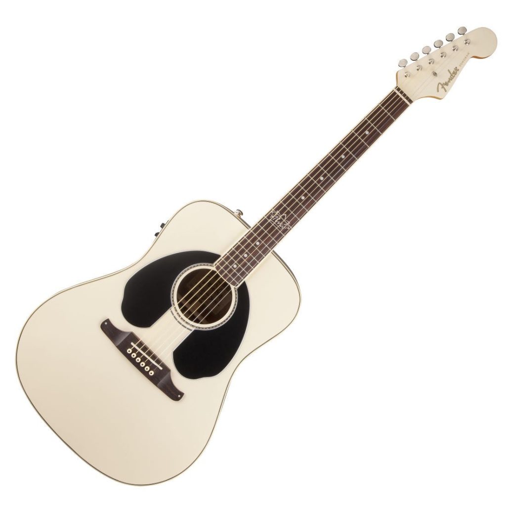 Some other features include quartersawn scalloped X bracing, checkerboard rosette and aged white neck and body binding, gloss-finish maple neck with C -shaped profile and dual-action truss rod, Stratocaster® guitar headstock, 20-fret rosewood fingerboard with 11.81 radius, rosewood bridge with compensated bone saddle, and vintage-style all-metal tuners.