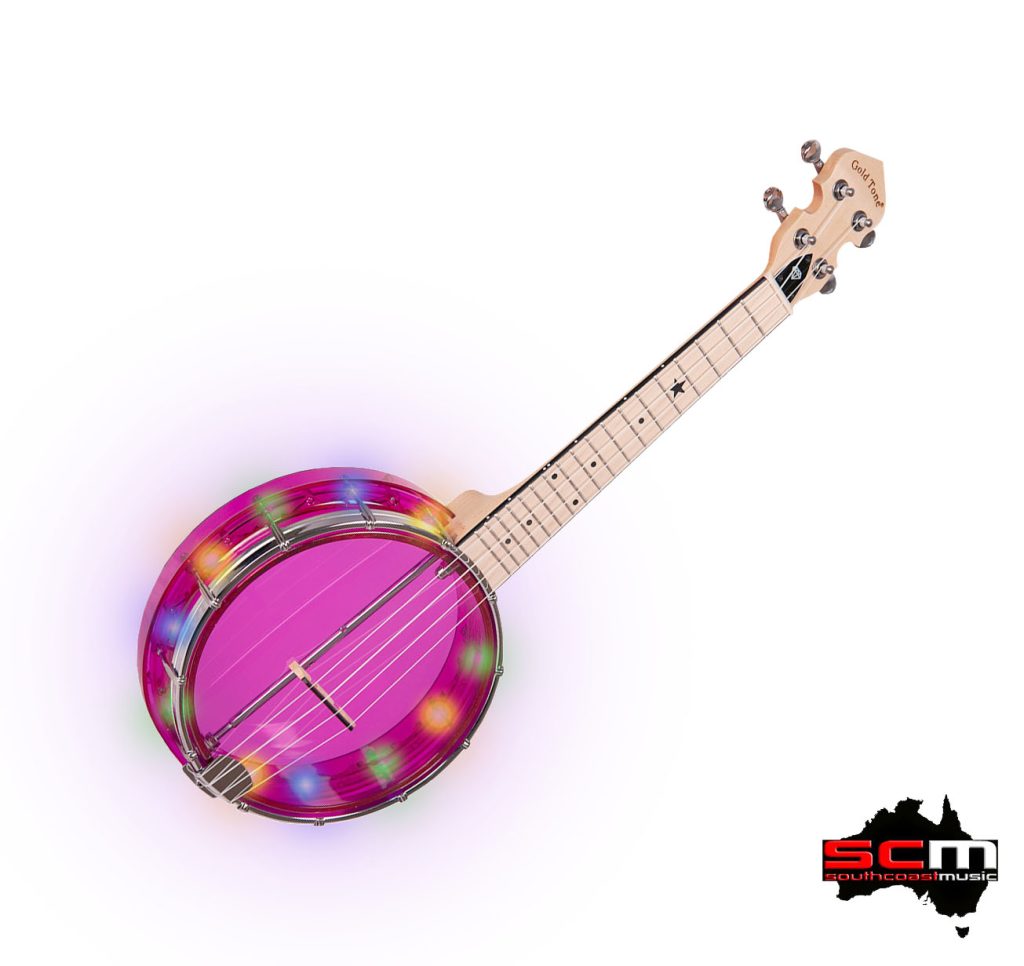Gold Tone Light Up Little Gem Banjo Ukulele Amethyst Purple finish - with Gig Bag-SOLD OUT -