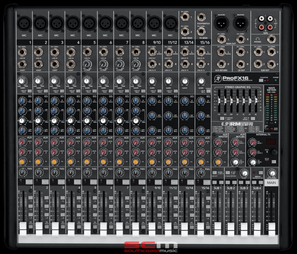 The ProFX16 is loaded with 10 Mackie low-noise mic preamps, 3-band EQ with sweepable mid, integrated “Gig-Ready” effects, precision 7-band GEQ and more. It has all the right tools, each and everyone designed to sound great.