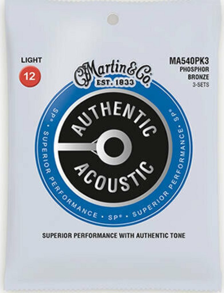 Martin Acoustic Authentic 3 Pack Light 12-54 92/8 Phosphor Bronze.
