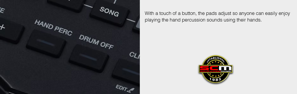 The DD221 also features a great selection of hand percussion sounds - with the simple touch of a button, the pads adjust so you can easily enjoy playing the percussion sounds using your hands.