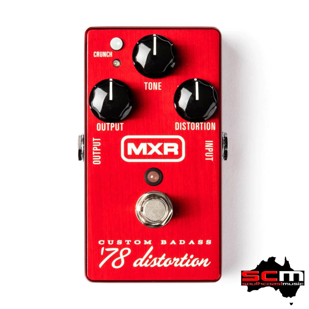 The MXR Custom Badass ’78 Distortion is a factory-modded pedal that roars with huge amp stack tones and old school tube amp-like distortion.