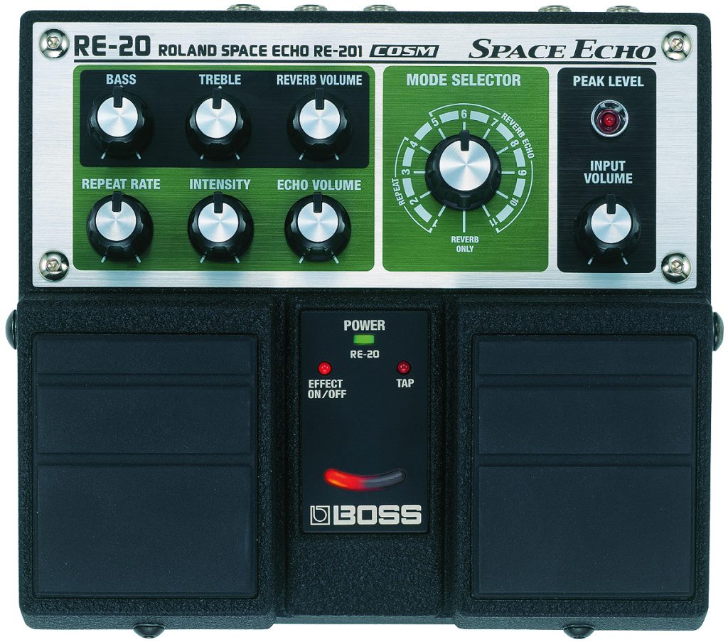 One of the most beloved echo effects ever made, the Roland RE-201 Space Echo, has been reborn as the BOSS RE-20 Twin Pedal! Roland and BOSS have recreated every sonic detail and nuance of the original. Experience the legendary tape-echo sound of the RE-201, and get “lost in space” with this retro-modern marvel.