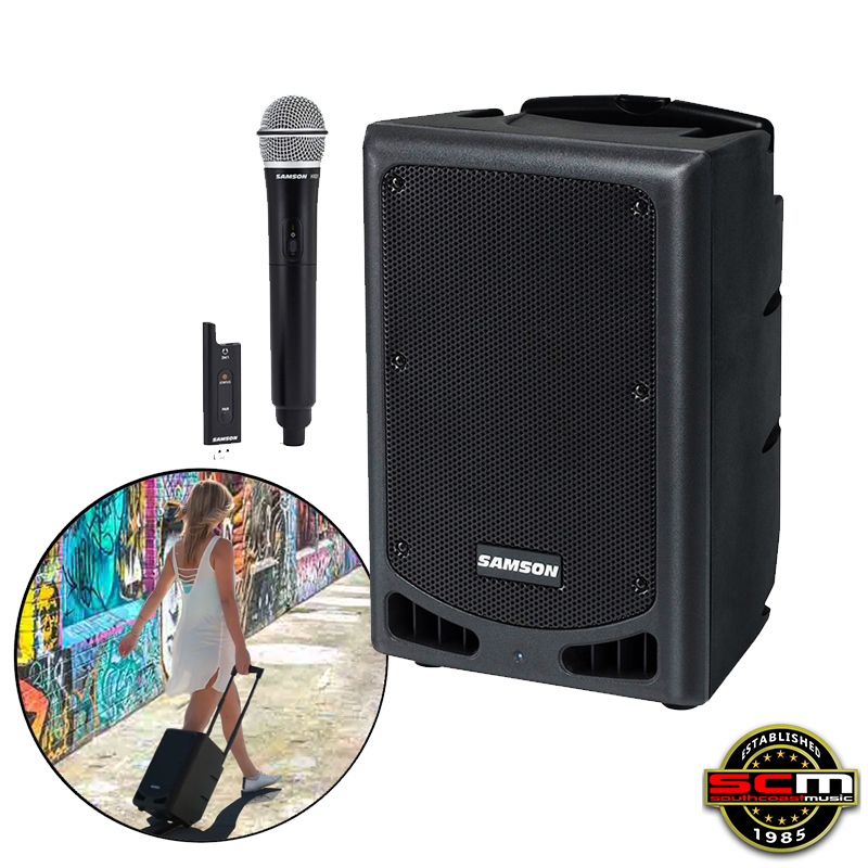 Samson Expedition XP208W 200-Watt Rechargeable Portable PA System with Handheld Wireless Microphone, Reverb and Bluetooth