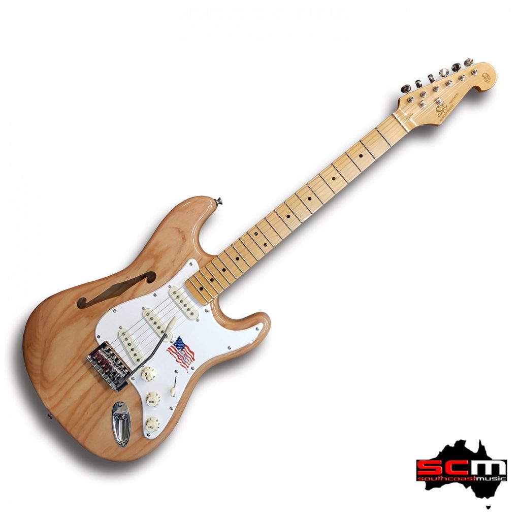 SX ASH2HNA semi hollow Strat style electric guitar American Swamp Ash Body Pro-SCM setup